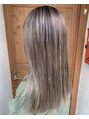 セミロングヘアのバレイヤージュスタイル^ ^カラーはミルクティーベージュ系で柔らかい質感を表現してます^ ^ 根本が暗いのでプリンが気になる方におすすめです☆