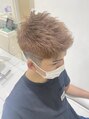 カラーはブリーチ2回でベージュ系。フェード風カットに一周ラインを入れたいかつ目スタイル。これからの季節スタイリングもしやすくカッコいいです!カラーとカットイメチェンしましょう!!