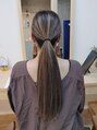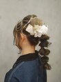 一つで結んだだけでも奥行きがでるように、バレイヤージュに表面ハイライトを入れて陰影が出るようにしています