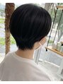 すっきりタイトな襟足とトップからナチュラルな丸みのあるシルエットがきれいなマッシュショートスタイル。