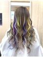 プルエクステ ダイヤ100本と特殊カラーエクステ(別途)で インパクトのあるスタイルに本数は地毛の長さや毛量で変わります