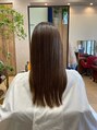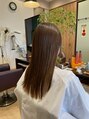 髪質に合わせた薬剤配合で、ダメージを抑えた縮毛矯正です。サラサラヘアで、手触りも抜群です。色味も明るめのモノトーン系で品がありながらも軽やかに。