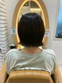 切りっぱなしボブで外ハネにしました♪色味はカーキ系で暗めですがくすみ感を出し、柔らかい雰囲気にしました(^O^)