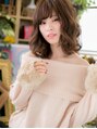 【スタイルは★ブックマーク★が便利】目の上ギリギリの斜めバングで目力UP。サイドの前下がりラインで輪郭カバーして小顔に。くせ毛風カールが大人かわいいふわミディは耳かけや厚めバングもGOOD。甘え顔に仕上げます♪(メイク担当:北浦和店 棟方)