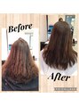クセを残しながらの自然な縮毛矯正。髪の状態をよくみて、クセをどの程度残すのかなど、しっかりカウンセリングをして、薬剤を選んで施術します。
