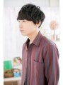 丸みを帯びたマッシュのやわらかさに、ミックスパーマで動きをつけて。流れるように動く束感で、アクティブ感と男らしさをプラス。厚めバングで目元を印象つけて。優し気だけどどこか色っぽい、深みあるカッコ良さを引き出したジェントルマンスタイル。
