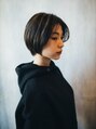 小顔見えのハンサムショートスタイルはバングと繋げることでワンレンっぽさがでて大人っぽい印象に。さりげなく入っているハイライトで動きと陰影が出て立体感がでます。襟足はすっきりと短くすることで首がスッキリ見えます!