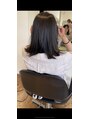 ストレートカールで、まとまりづらいミディアムヘアをシースルー前髪とニュアンスレイヤーカットでトレンドの抜け感を演出^_^黒髪がヘルシーで新鮮!