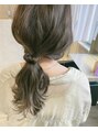 暗さの中に透け感のあるカーキグレージュにきちっとなりすぎない抜け間のあるヘアアレンジがポイント*