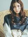 お顔周りを華やかにするだけでなく、全体のバランスを整える効果もあるウェーブヘア。落ち着きのあるダークブラウンに合わせてアレンジも映えるスタイルに。