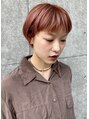丸みショートボブ × ブリーチなし × 11トーンのオレンジ色