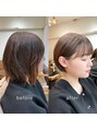 【気に入って頂いたスタイルはブックマークをしてお気軽にご提示ください】カットは顔まわりは小顔を意識したカット襟足は浮かないようにしました色は季節に合った人気のカラーです。少しおちついた中も角度などによって綺麗なブラウンになるのが特徴です !