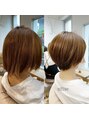 【気に入って頂いたスタイルはブックマークをしてお気軽にご提示ください】カットは顔まわりは小顔を意識したカット襟足は浮かないようにしました色は季節に合った人気のカラーです。少しおちついた中も角度などによって綺麗なブラウンになるのが特徴です !