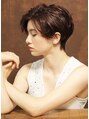 前髪長めのショートカット。クセ毛のようなパーマをかけ遊びをプラス。クールになりすぎないように、後頭部に丸みをつけて女性らしさも。襟足はタイトにして首元をすっきり綺麗に見せます。ラフにスタイリングすることでオシャレ度もup!