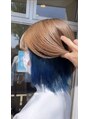 全頭ブリーチ毛に表面ミルクティーブラウンとインナー明るいブルーの組み合わせカラーです☆