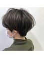 マッシュショートをベースに耳まわりと襟足をスッキリ短めにしたスタイル、グレージュカラーと相性の良いオシャレなショートスタイルです。
