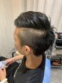 サイドとバックをフェードで刈り上げ、トップは長めに残し流してます。剃り込みも入れて渋めのバーバースタイルです◎