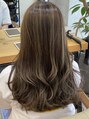 ロングスタイルにはオトナハイライトデザイン♪ハイライト部分はブリーチ抜きっぱなしでコントラストをつけてカラーリング☆ベースカラーは7Lvのアッシュで♪