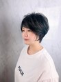 やや長めの襟足ともみあげで、首筋・顔まわりをキレイに魅せる♪トップはふんわりとやわらかな毛流れでリラックスした印象に!ネイビーカラーで甘すぎない雰囲気に仕上げました(*^▽^*)
