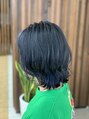 くすみブルー ネイビーカラー 外ハネミディアムウェーブ 小顔/ホットペッパービューティー