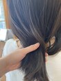 - カットで軽やかな質感を出し、カラーで透明感をアップ!!トリートメントはコアミートリートメントです!