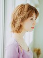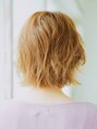 ハイトーンショートボブ スタイルはセンター分けでキュートによりすぎないように!くせ毛っぽくするには、アイロンでランダムにねじったらスタイリング剤で動きをつけると”くっしゃっと”くせ毛風ボブが仕上がります![船橋/船橋駅]