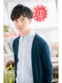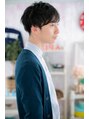 重めだけど動きのある個性的な前髪がポイント。コンパクトシルエットにまとめることで、小頭効果&スタイルアップを狙います。ツヤ感のある黒髪で男らしくセクシーに。ラフな動きのあるニュアンスパーマで、決めすぎないナチュラルで優し気な雰囲気に。