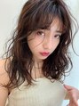 動きが出しやすいようにトップにレイヤーをいれ質感がでるようにたっぷりストロークカットを♪根元からのニュアンスウェーブがフェミニンな甘すぎないミディアムスタイル☆