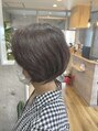 ショートとボブの間くらいの長さで丸み・重みの両方を持ち合わせているショートボブ。襟足も首にそうようになっています。乾かしただけでまとまるようにカットしているので毎朝のスタイリングが時短できます。