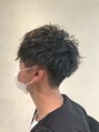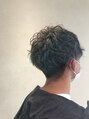 サイドからえりあしにかけて刈り上げ、軽いけど軽すぎないにラフな動きの出せるスパイラルパーマです。