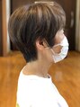 50、60代にオススメしたい大人ショートスタイル。スタイリングをしなくてもきまるスタイルです。カラーも明るい白髪染めで透明感のある綺麗な色になってます。