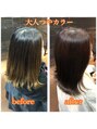 だんだんツヤがなくなってきて、パサつきが気になる方におすすめ!トリートメント成分配合のカラーでうるツヤに☆気に入って頂いたスタイルはブックマークしてご提示ください。