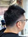 ツーブロックアシメになります☆左サイドはツーブロックにして、右サイドは刈り上げをつなげてます!カラーはブルーブラックでほんのりと青みを出しています!