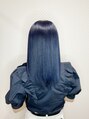 1回のブリーチでできるネイビーブルーで、色落ちも可愛いカラーです。髪質によっては2回ブリーチ必要になる場合もあります。