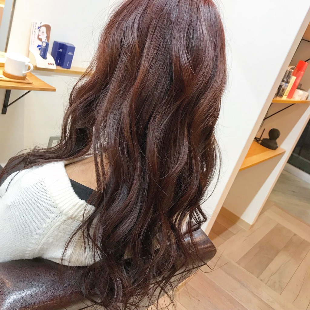 インナーブリーチを入れてそのあとチェリーピンクをオンカラー!!チラ見せでオシャレ度UP♪