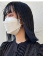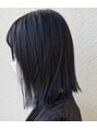 インナーカラーはブルーブラック、そして全体もブルーブラック。ブリーチしてあるところとしていないところのさりげない差が可愛いです。クールでミステリアスな雰囲気とてもお似合いです