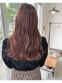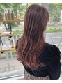 ピンクベージュのハイライトデザイン。毛先にかけて全体に明るく、根本は程よく筋感が出るようにハイライトにしてます。