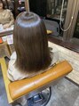 明るめアッシュブラウンカラーで柔らかさ、透明感のある色味に仕上げています。ブリーチ履歴ありだとより柔らかさが出ます。