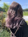 紫陽花カラーエアータッチでブリーチ後ピンクパープルをオン★角度や光の加減でピンクにもパープルにも見えるカラーです!