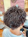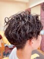 ツーブロマッシュをベースにスパイラルパーマをON。無造作に散る立体的な動きとリッジ感がオシャレ。前髪は下ろすとうっとうしいということで自然に分かれるところを起点に上げつつ少し流れるようにパーマを調整しました。長めでも軽やかな感じがイイですね!