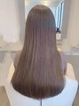 32ミリのコテでゆるく巻いたロングヘアースタイル。カラーはアッシュの混ざったやわらかベージュで♪ロングで髪が多く見えやすい方は透明感カラーはおすすめです◎
