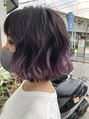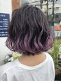 切りっぱなしボブスタイルにグラデーションのデザインカラー☆カラーはややピンクみがかったパープルになります☆※ブリーチ2回ベース