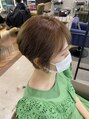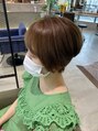 マッシュベースのショートスタイル。サイドは長さを残し、耳にかける等アレンジ自在です。カラーは9LVのアッシュベージュ。