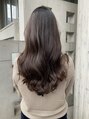 女性らしい上品なハイライトに艶のあるブラウンです^ ^少しのラベンダーで深みのある色味になっております。毛先は重さを出し、顔周りにレイヤーをいれています。