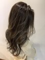 全体的にランダムなハイライトをたくさん入れて上から透明感グレージュをかぶせました^ ^赤味、オレンジ味をしっかり削ったナチュラル外国人風カラーです☆やりすぎないハイライトで大人の品と上質さを出したスタイルです^ ^