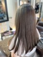 全体的にアッシュグレーのカラーをのせて以前させてもらったハイライトには少し青みのある色合いベースは赤みを抑えた透明感のある色合いええ感じに!喜んでもらえて、ええ感じ^_^