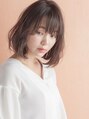 抜け感のあるシースルーバングでゆるふわミディアムボブ。赤味を消したオリーブベージュでやわらかさアップ!トップにレイヤーを少し入れて、ボリュームをい出しやすくします。前髪とサイドの間に絶妙なバランス長さの毛をつくることで、さらに可愛く♪