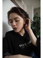 丸みのあるクセ毛風ボブをかきあげてクールカジュアルに見せたスタイルです。顔まわりのインナーカラーはベースの色と馴染むモーブブラウンにし、大人なエッジをきかせファッショナブルに決まるポイントです。
