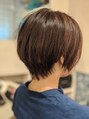 フロントまわりにウエイトがある分、バックはコンパクトに。襟足をタイトにしたショートグラデーションボブ。