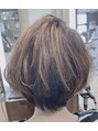 丸みのあるマッシュボブゆるくパーマで動きをつけました。グレイカラーですが、ハイライトで目立たなくしてあります。ムースを揉み込むだけの楽ちんヘアーです。